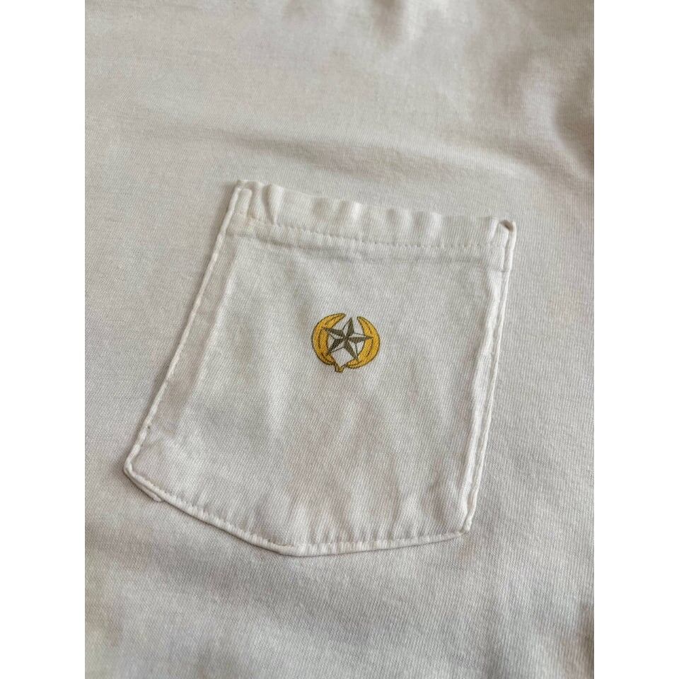 この年代ならではな胸ポケのバナナロゴとモノクロで描かれたサルの群れやサイのNICEグラフィック‼︎
