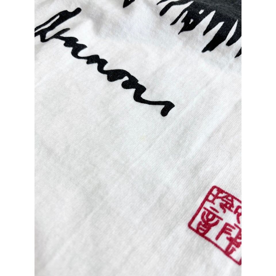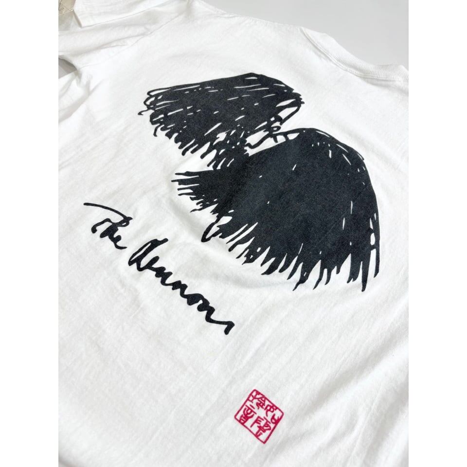 フロント胸にはお馴染みの自画像、バックには妻のオノヨーコとのアートが描かれるスペシャルな1枚