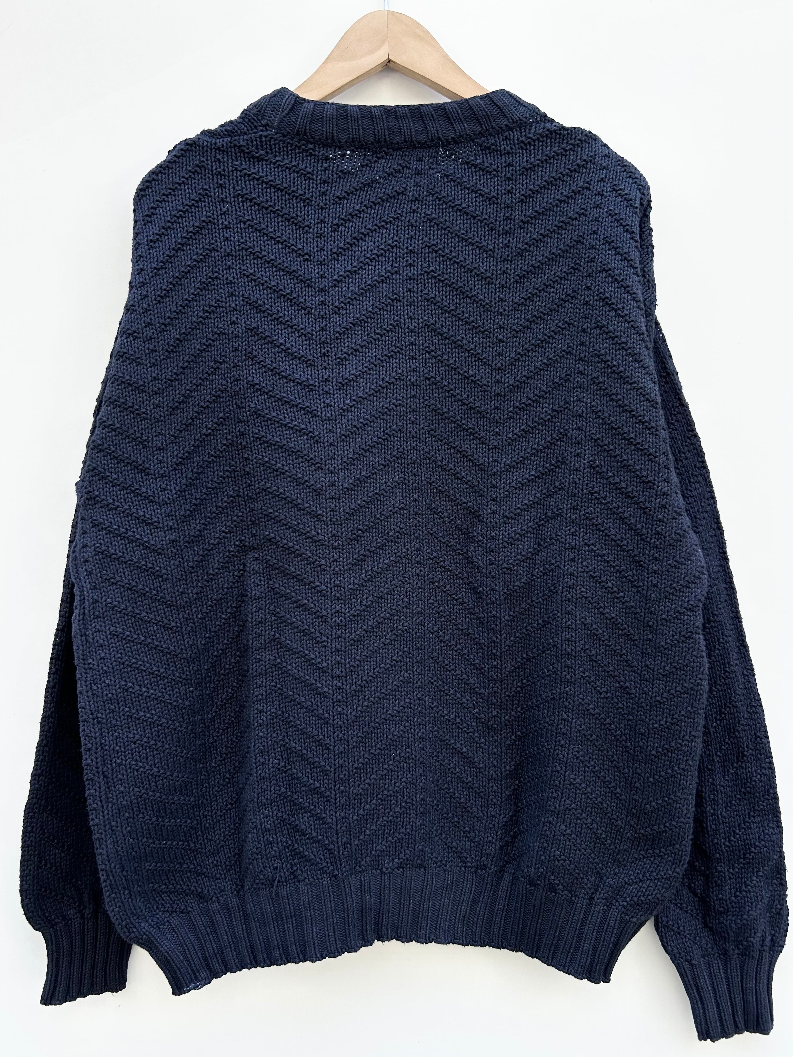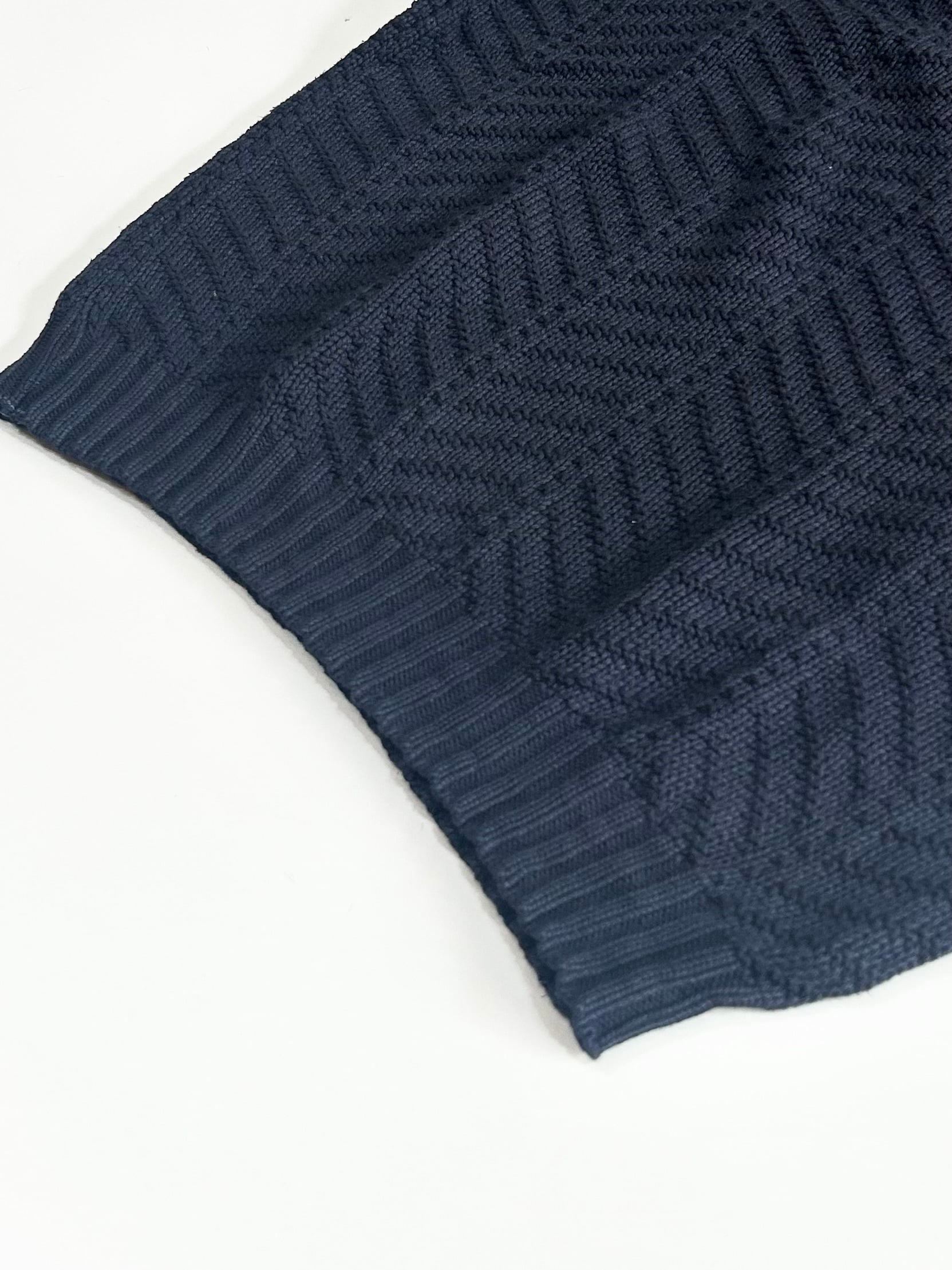ネイビーカラーのヘリンボーンの様な編み柄のデザイン‼︎